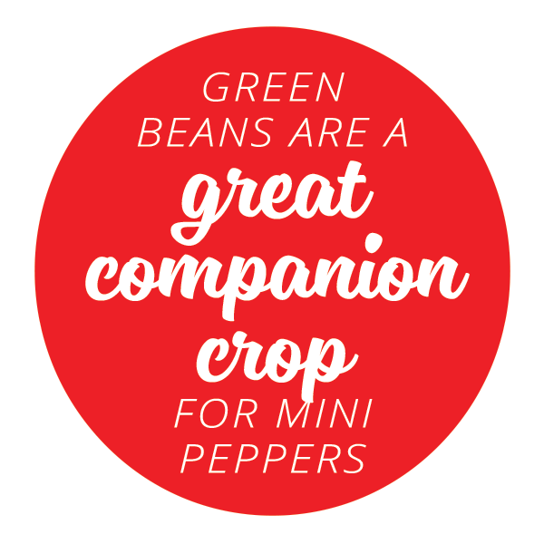 We use companion crops to replenish nutrients in our soil. Green beans are a great companion crop for mini peppers.